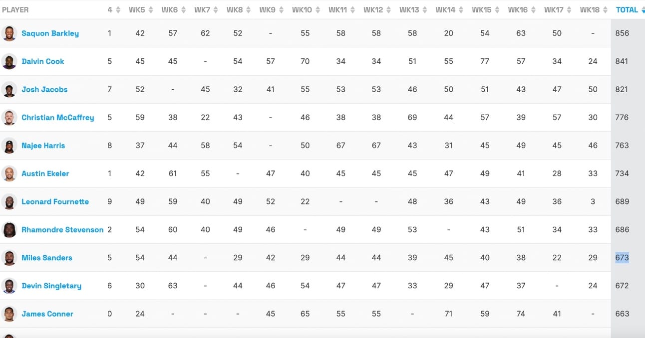 Miles Sanders (CAR), ADP 64.9, RB21: