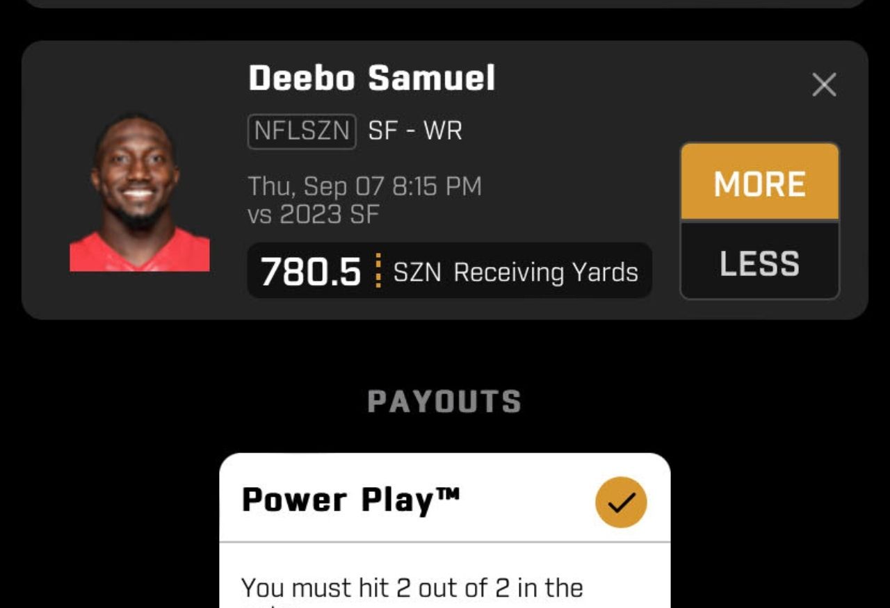 WR Deebo Samuel only played in 13 games last year. If he’s healthy, he’ll beat his PrizePicks line of 780.5 yards.