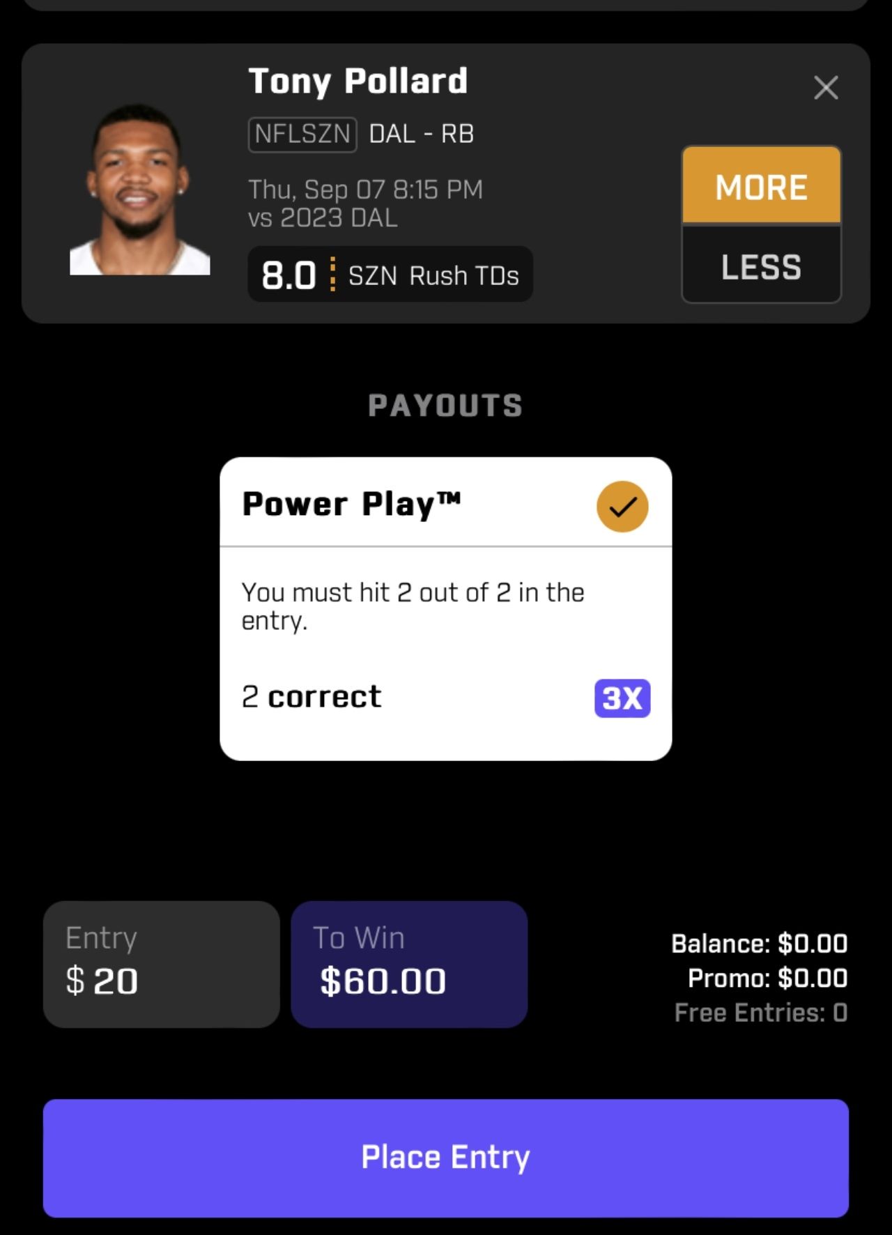 Considering Elliott had 12 rushing TDs on his own last season, I’m banking on Pollard to get MORE THAN 8, listed on PrizePicks.