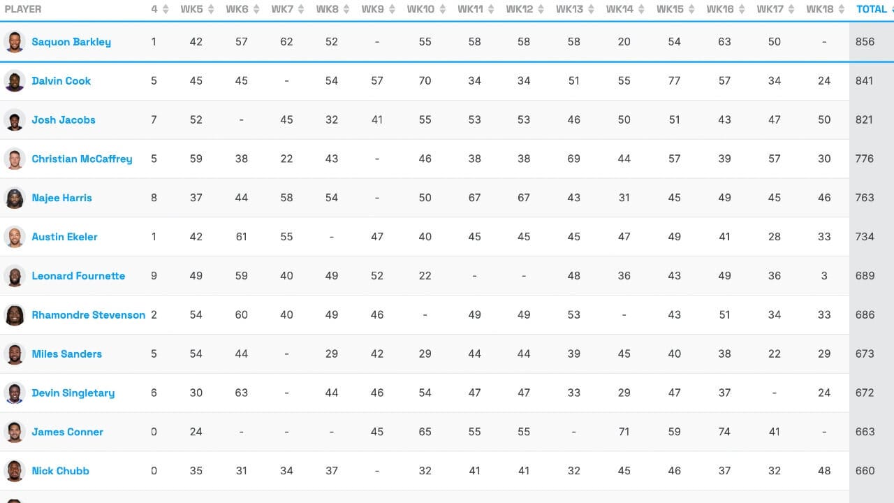 He even led all RBs in snaps last year, according to the tool from Matthew Berry’s Fantasy Life: