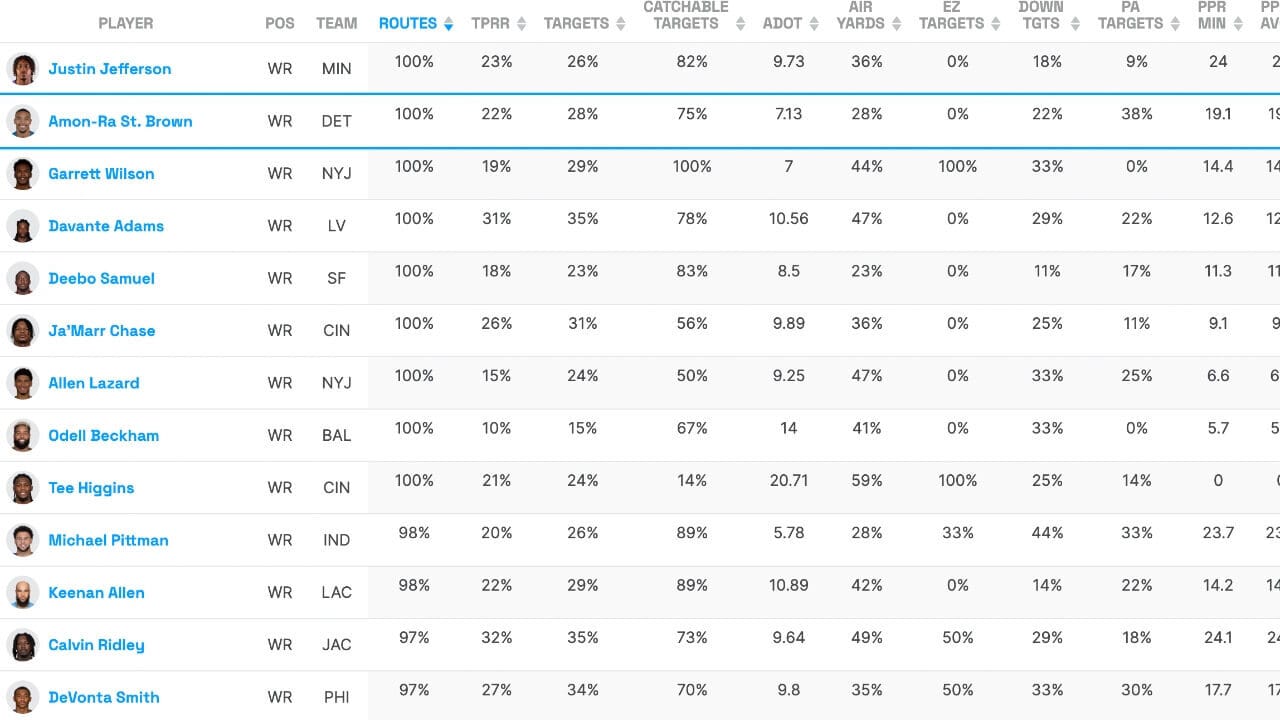 In Week 1, he stepped right back into his role as the no. 1 guy on the Lions. He ran 100% of the team’s routes, and had 28% of the team targets.