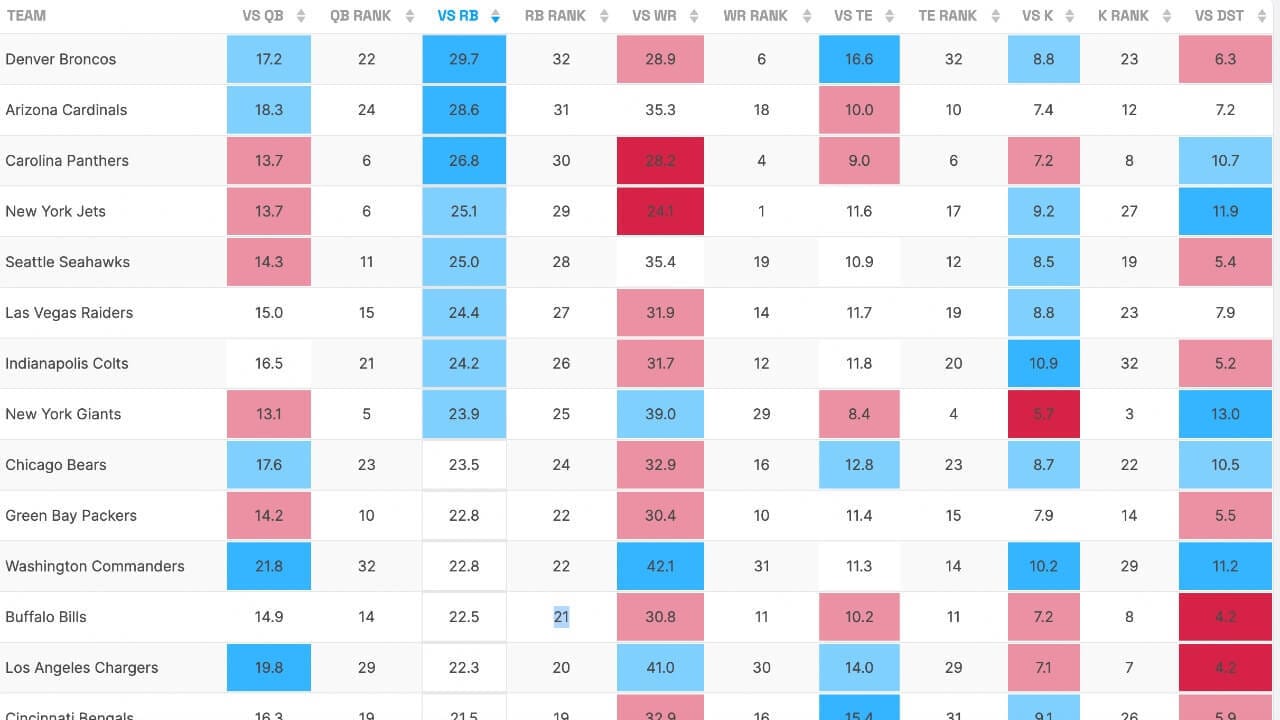 At the very least, he’ll have some RB2/Flex appeal as the only viable runner in the New England backfield. As a bonus, he faces the Broncos and Bills during the last two weeks of the fantasy playoffs. Both teams are vulnerable to RBs according to the Fantasy Life’s Defense vs. Position tool: