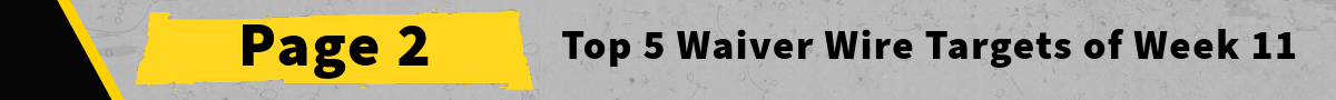He’s another guy who should have been snatched up during Week 10. Granted, he had a difficult matchup vs. the Browns and his volume is always going to be capped by Gus Edwards, but he showed some shiftiness that makes him a decent stash for the stretch.