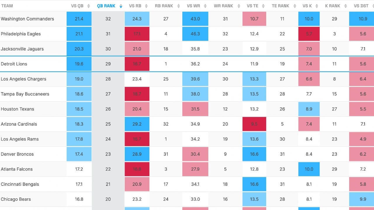 So the lack of pressure is massive for him. Overall, Arizona is 31st in passing points allowed per attempt and 27th in passing points allowed per game. This feels like a Fields week.