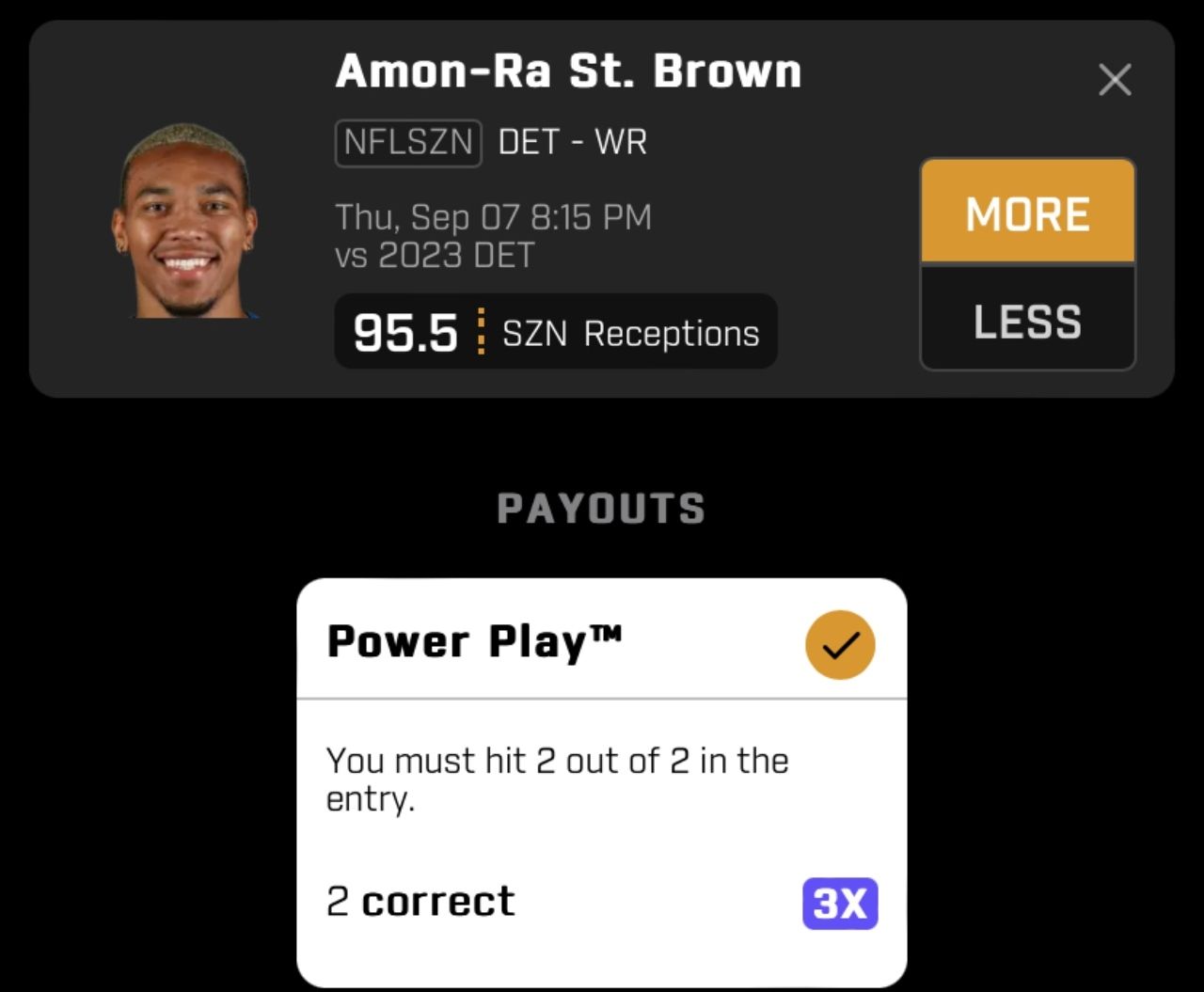 With all the targets he gets and the Jameson Williams suspension, I can’t see a scenario where Amon-Ra doesn’t get MORE THAN 95.5 receptions.